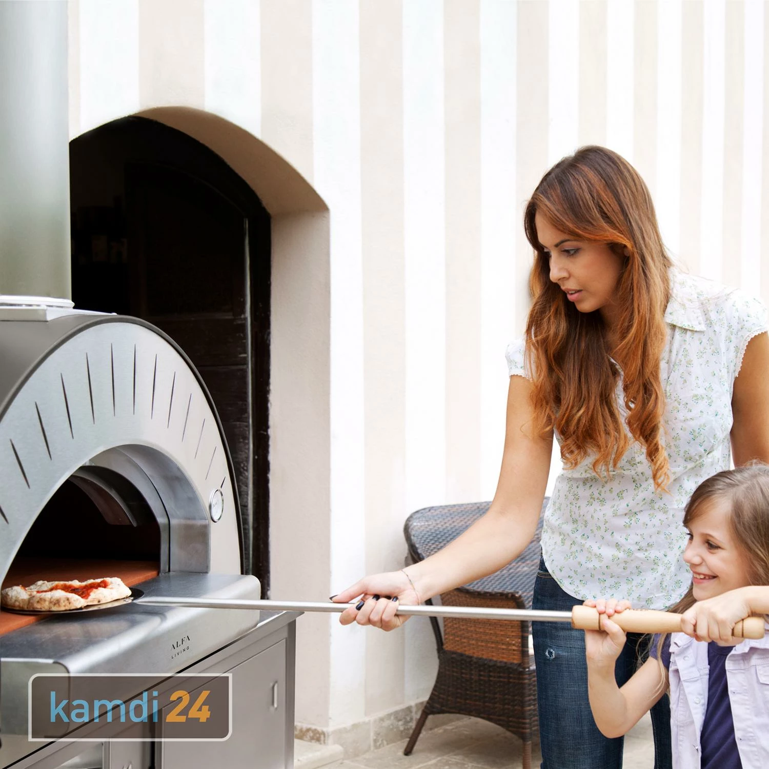 Holen Sie sich „La Dolce Vita“, also das süße Leben Italiens, mit dem gleichnamigen Pizzaofen auf Ihre Terrasse! Genießen Sie leckere Pizza, Flammkuchen, Brot oder Kuchen aus dem größten Gasbackofen der Manufaktur . Durch die Ofentür mit Glaseinsatz haben Sie immer den vollen Durchblick und bereiten neben den italienischen Köstlichkeiten auf dem feuerfesten Schamottestein auch Gemüse, Fisch und Fleisch mühelos zu. Mit dem zusätzlich erhältlichen verwandeln Sie sogar in einen Holzbackofen!