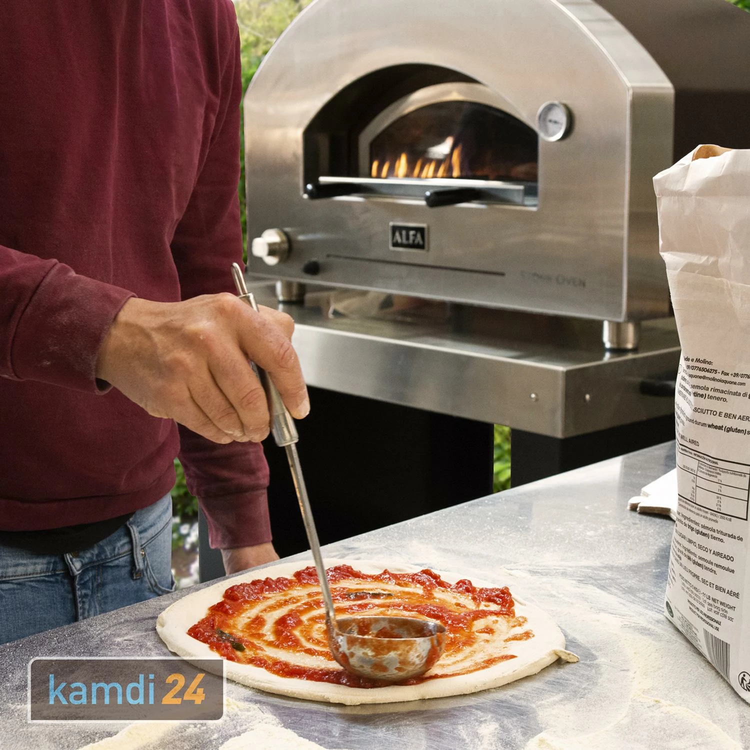 eignet sich hervorragend für gesellige Runden mit bis zu 20 Gästen. Das hochwertige Gerät kann super auf dem von Alfa Forni platziert werden. Die vier Standfüße sind bis zu 7 cm höhenverstellbar und mit Endkappen aus Kunststoff ausgestattet, welche ein Verkratzen der Tischoberfläche verhindern. Alternativ integrieren Sie unter Berücksischtigung der Mindestabstände auch mühelos in Ihre Outdoorküche und genießen zukünftig knusprige Pizza wie frisch vom Italiener!
