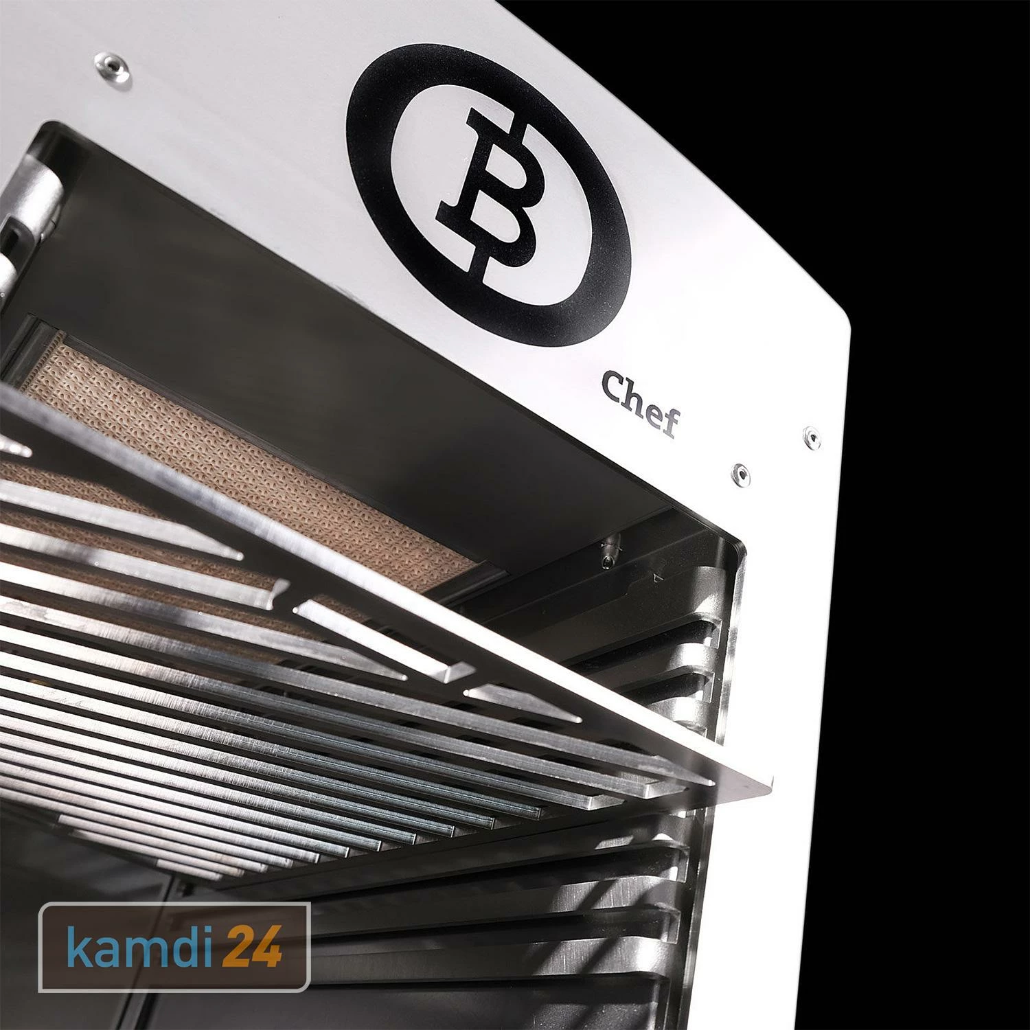 Der stellt die Konkurenz mit einer sensationellen in den Schatten. Der keramische Brenner ist „made in Germany“ und befindet sich über den Grillrosten, sodass Ihr Grillgut mit reiner gegart wird. Das Fleisch erhält so eine knusprige Kruste und belibt im Inneren zart. Von Vorteil ist dabei auch, dass kein Fleischsaft auf die Hitzequelle treffen und gesundheitsschädliche Stoffe verursachen kann. Stattdessen werden Garflüssigkeiten mit den im Lieferumfang enthaltenen aufgefangen und können nach Belieben verwertet werden.