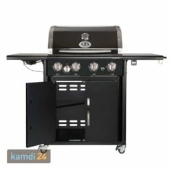Sie suchen einen echten Allrounder für Ihre Grillvorhaben? Dann entdecken Sie jetzt den von ! Auf der finden Steaks und Bratwürste ebenso Platz wie Grillkäse oder bunte Grillspieße. Das praktische sorgt dafür, dass Ihre Speisen bis zum Servieren angenehm heiß bleiben. Drei mit einer Leistung von je 4,3 kW liefern die dafür nötige Hitze, welche über das integrierte Deckelthermometer stets kontrolliert werden kann. Und damit Sie Beilagen oder Soßen zeitgleich zu Ihrem Grillgut zubereiten können, verfügt der über eine zusätzliche 4,4 kW starke . Die linke Seitenablage sowie der praktische Unterschrank bieten Platz zum Verstauen von wie Grillzange, Gewürze oder Geschirr.