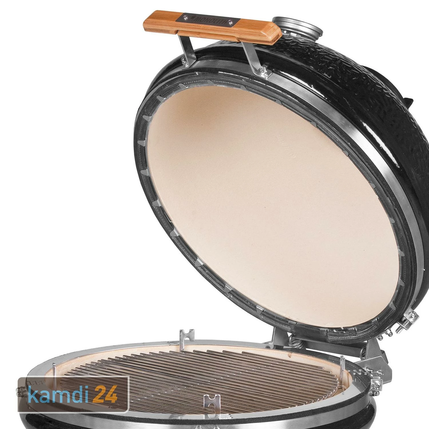 Der Deckel lässt sich durch den veränderten Drehpunkt leicht öffnen und schließt gleichzeitig durch sein Eigengewicht perfekt. Das Abluftventil aus Gusseisen, die veredelte Glasfaserdichtung und der fest eingebaute Adapter für den Blower runden den MONOLITH-Grill ab.