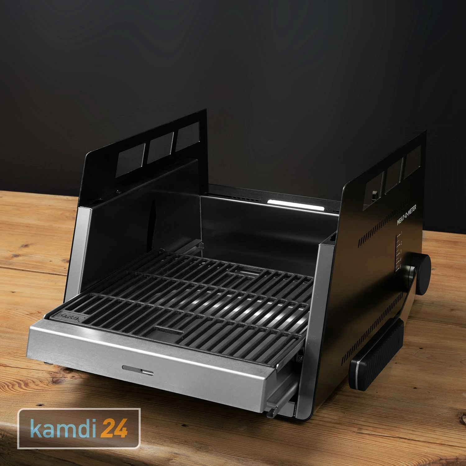Der , der 2018 mit dem German Design Award und 2019 mit dem Iconic Design Award ausgezeichnet wurde, ist für den Außenbereich vorgesehen und kann als z. B. bequem auf einen Gartentisch gestellt werden. Um den Untergrund vor der Hitze zu schützen, besitzt das Gerät einen herausziehbaren Hitzeschild. Um dem Grill so richtig einzuheizen, benötigst du nur handelsübliches Propangas.