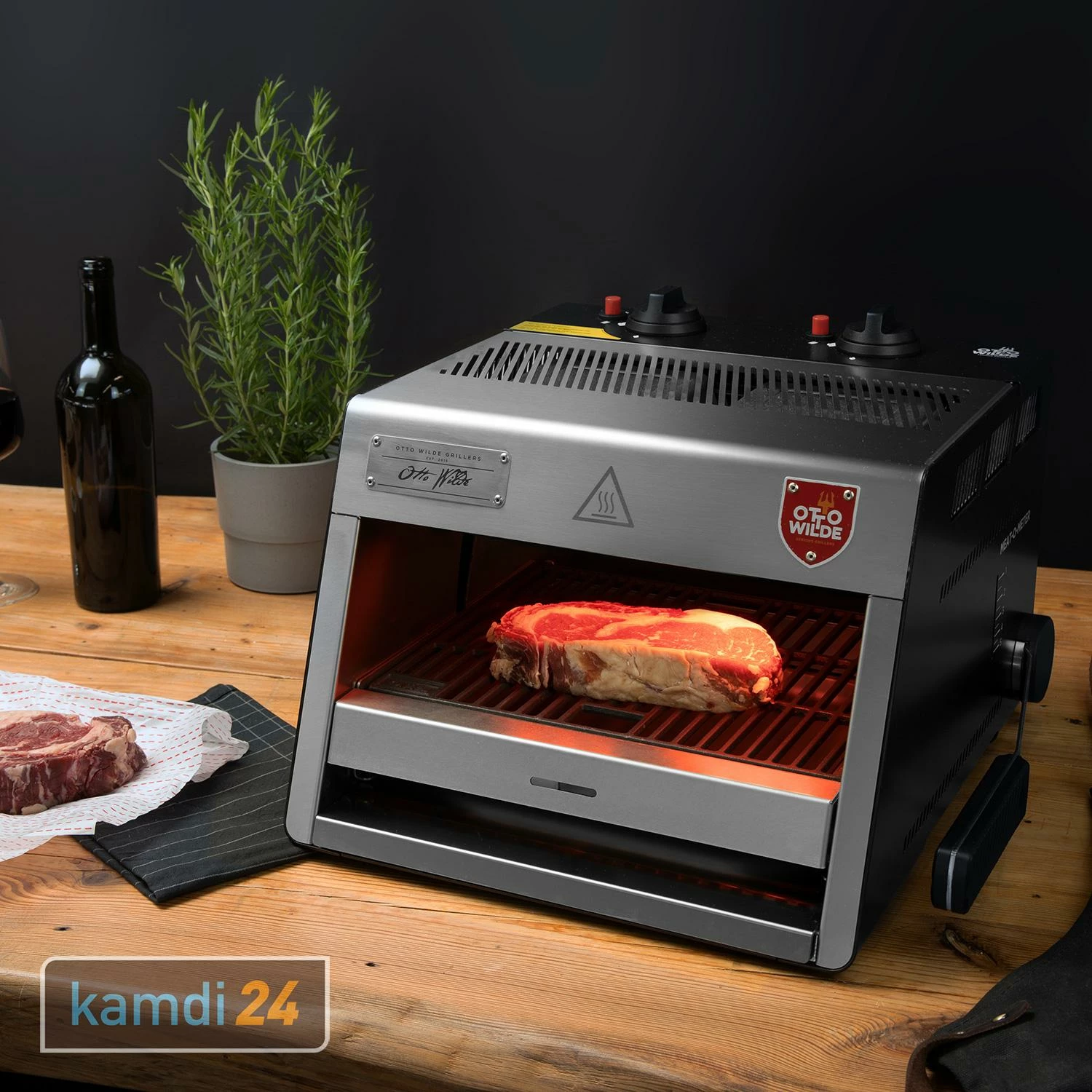 Der von ist mit ausgestattet und schafft es dank der in auf Temperaturen von – so bleibt dein Steak innen zartrosa und saftig, während es außen goldbraun ist! Der Hauptunterschied zwischen dem und dem O.F.B. Premium ist der praktische , mit dem sich der zusammen mit der Fettauffangschale in jeder erdenklichen Höhe herausziehen lässt. So lässt sich das , ohne den Tisch zu beschmutzen.