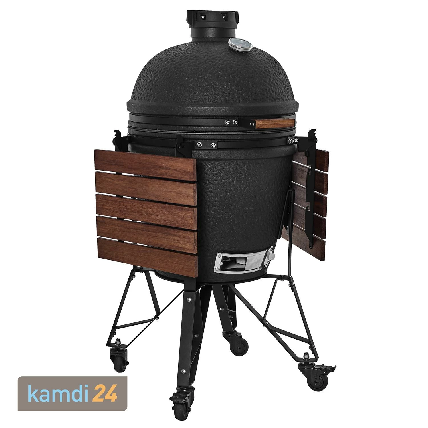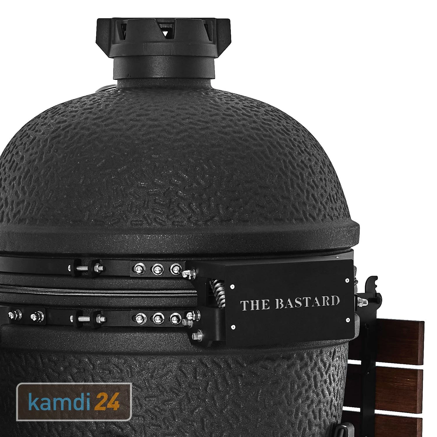 ist der Bestseller des gleichnamigen Herstellers aus den Niederlanden. Seine macht diesen Keramikgrill unglaublich vielfältig in seinen Einsatzmöglichkeiten. Der zweigeteilte, halbmondförmige Deflektor ermöglicht sowohl das direkte als auch das indirekte Grillen. Über das auf der Kuppel steuern Sie die Luftzufuhr und damit die Gartemperatur im Grill. Dank der wird die Wärme optimal im Grill gehalten, ohne zu entweichen. Die beiden von The Bastard Large Urban Complete bieten ausreichend Platz zum Abstellen von Grillzubehör. Und damit der Kamado immer dort steht, wo Sie grillen möchten, ist das Heavy Duty Gestell mit vier Rädern ausgestattet. Das Large Urban Modell punktet zudem mit einem stylishen matten Finish. Über das Varianten-Menü können Sie aber auch eine klassisch glänzende Oberfläche auswählen.
