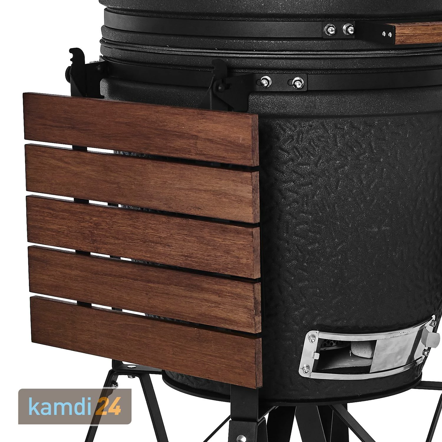 Der Kamado von The Bastard ist mit hochwertigen Seitentischen aus Bambus-Holz ausgestattet. Diese bieten die Möglichkeit Grillzubehör wie Gewürze, Grillbesteck oder Geschirr bequem abzustellen. Werden die Seitentische nicht benötigt, können diese ganz einfach zugeklappt werden. Dank dem verbesserten Tischscharnier wird zudem das Klappern der Tischplatte verhindert.