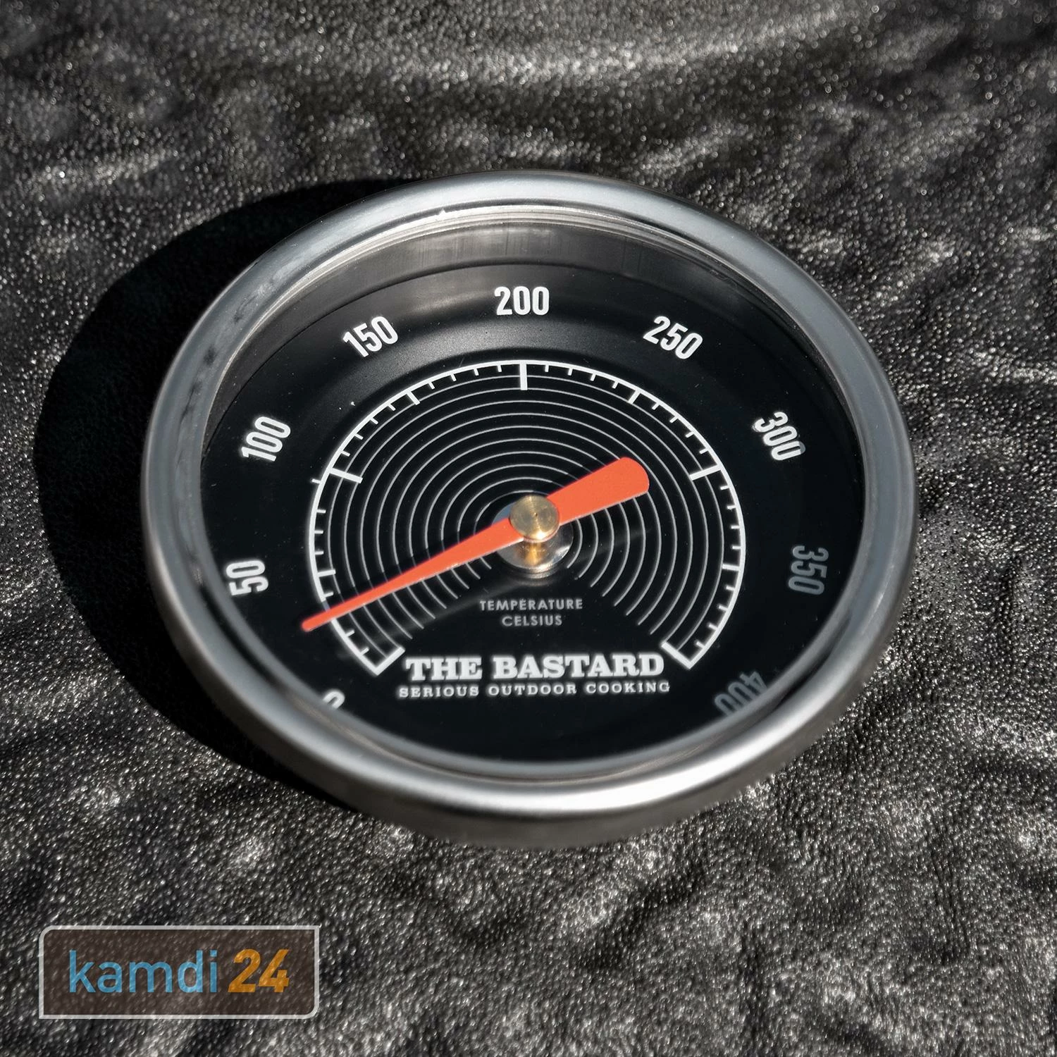 Die hochwertige Kuppel aus spezieller Cordierit-Keramik ist besonders beständig gegen sehr hohe Temperaturen. Das integrierte Thermometer zeigt zuverlässig die Garraumtemperatur an.