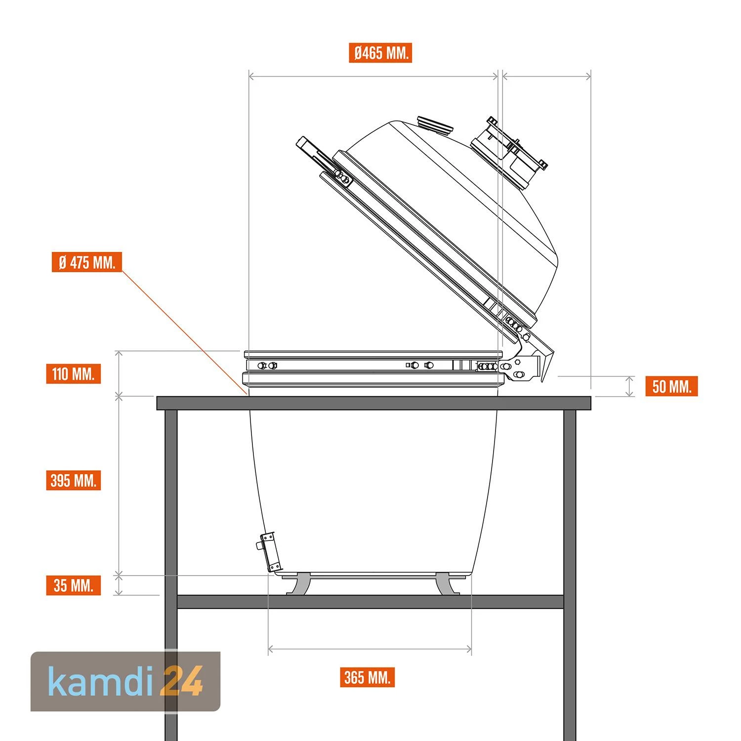 Dank der , die um 180 Grad gedreht werden kann, steuerst du zielgerichtet die gewünschte Grilltemperatur. Dabei bleibt die Einstellung auch beim Öffnen des Keramikgrills immer in der richtigen Position.