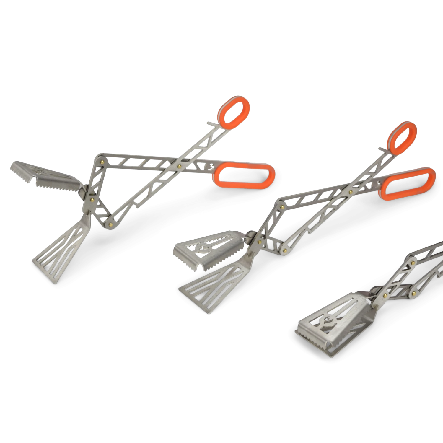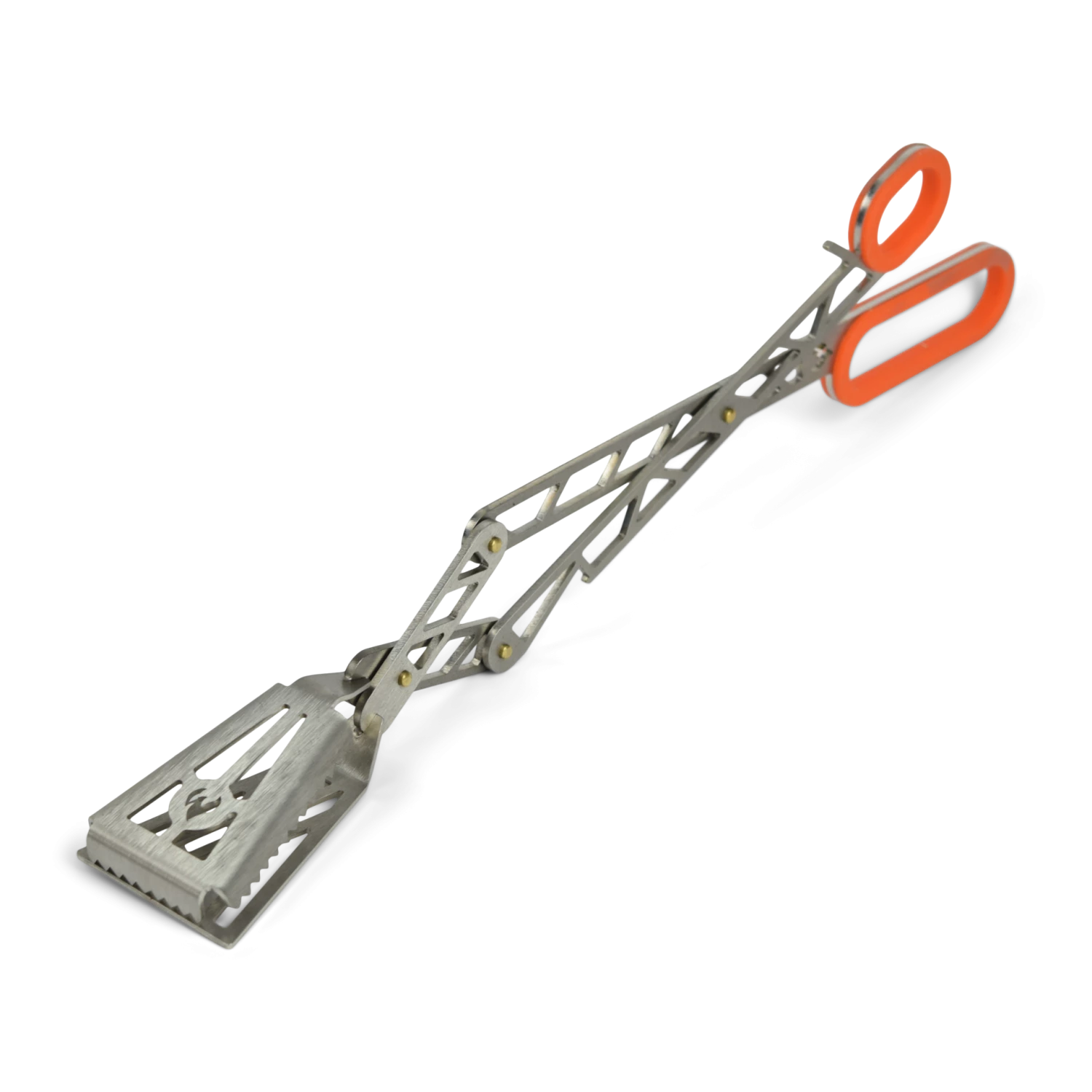 The function of the barbecue tongs is based on the lever principle, so they can be used with relatively little force. As always, the tongs are made entirely of stainless steel with two orange silicone handles. The tongs are mounted with beautiful brass rivets and are, of course, produced entirely in Germany.