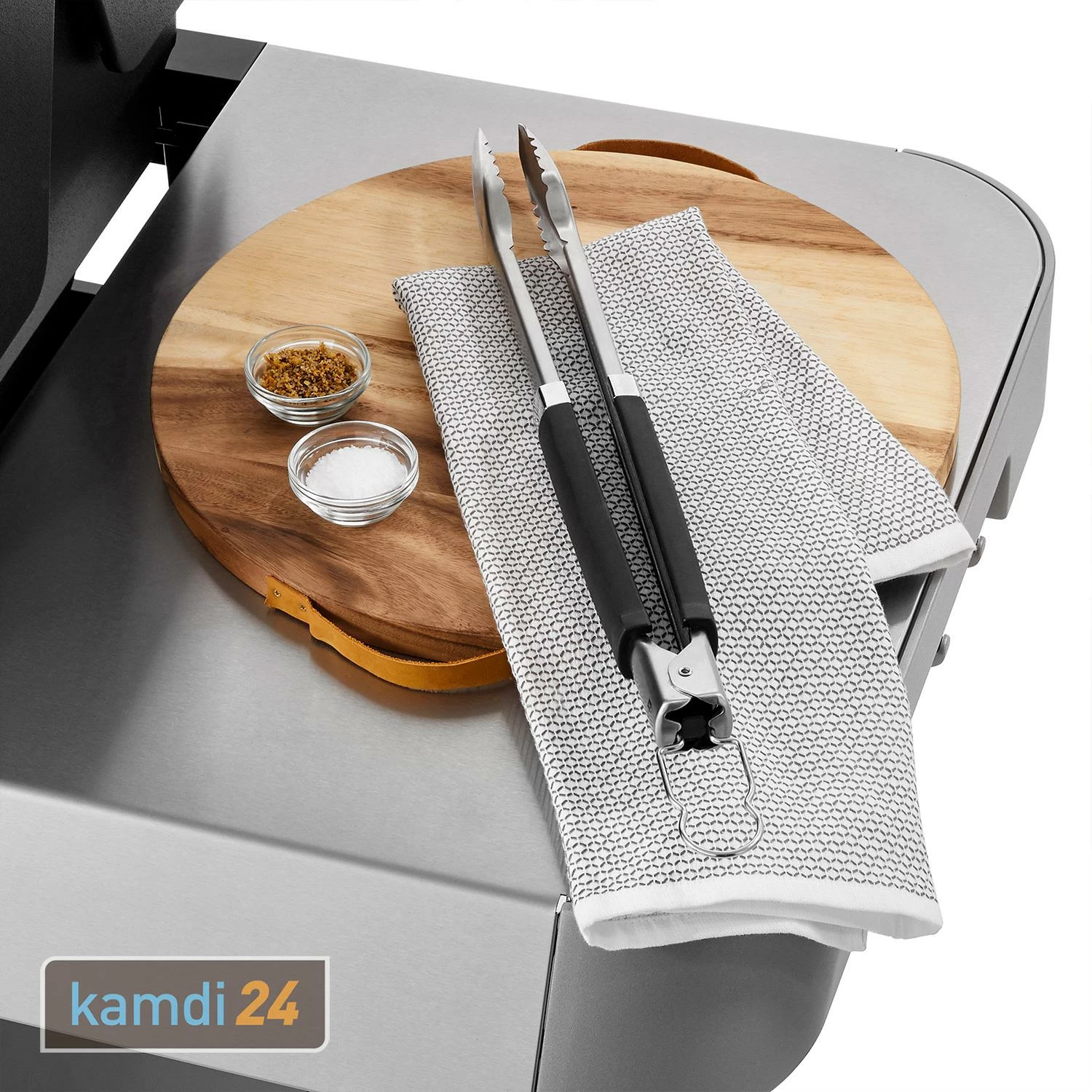 Damit du problemlos Speisen vorbereiten kannst und immer das wichtigste zur Hand hast, bietet dir der Gasgrill von Weber einen klappbaren Seitentisch sowie ausreichend Stauraum in den Unter- und Seitenschränken.