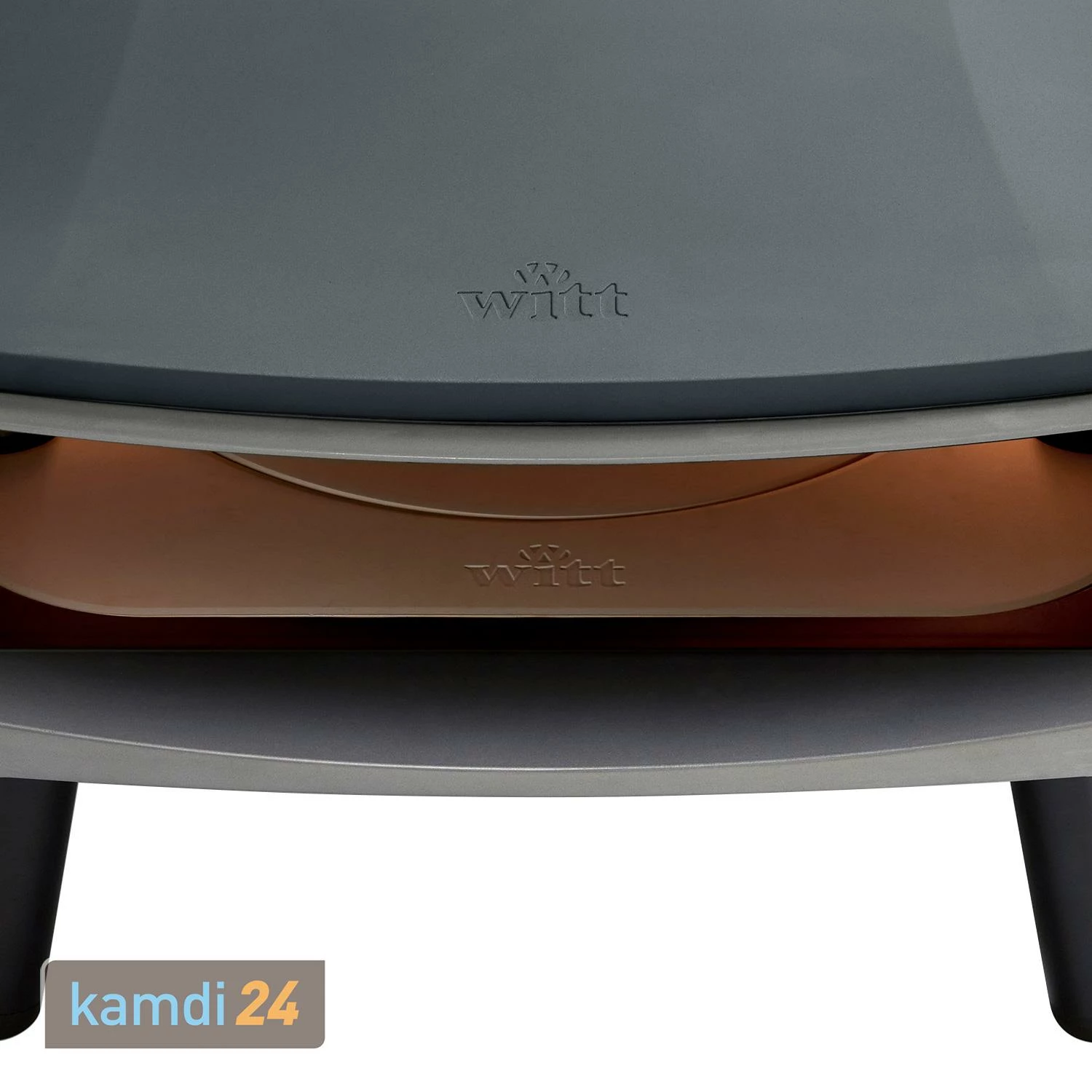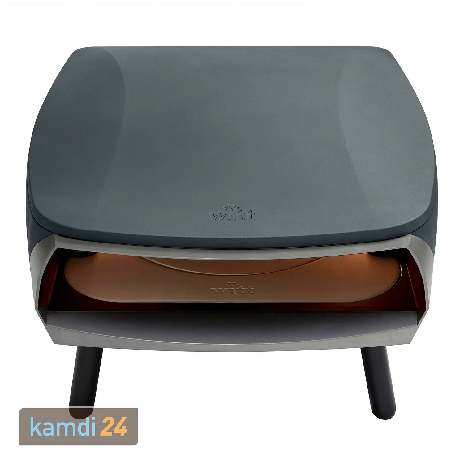 Witt bietet den gasbetriebenen Pizzaofen in vier verschiedenen Farben an: Stone, Graphit, Schwarz und Orange. Wählen Sie über das Varianten-Menü Ihren Favoriten aus.
